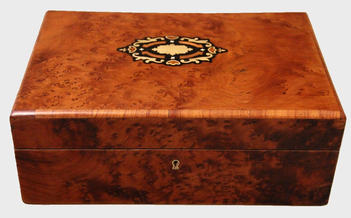 Franse doos in esdoornwortel hout (zgn vogeloogjesmotief).