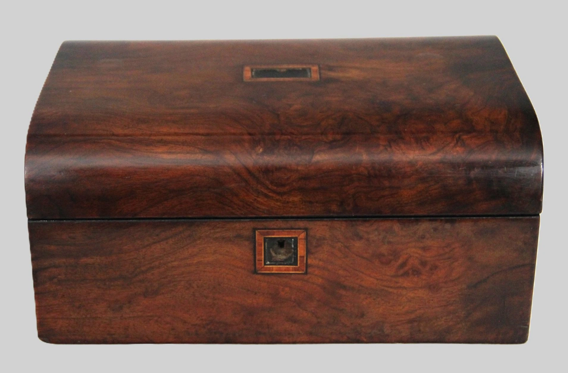 Kistje met afgerond deksel in notenhout.