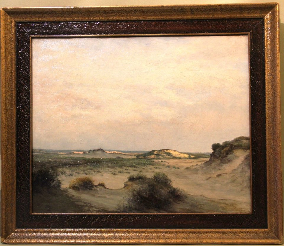 Schilderij op doek in oorspronkelijke lijst.