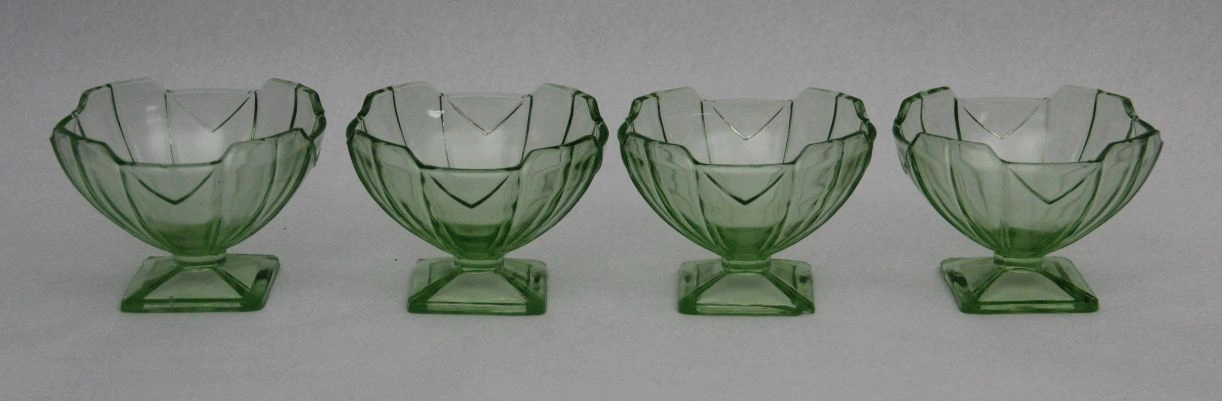 Set van 4 ijscoupes in groen geperst glas.