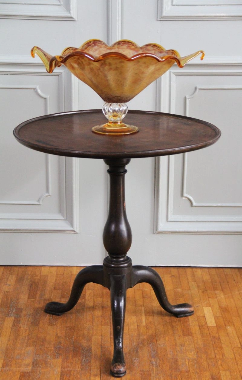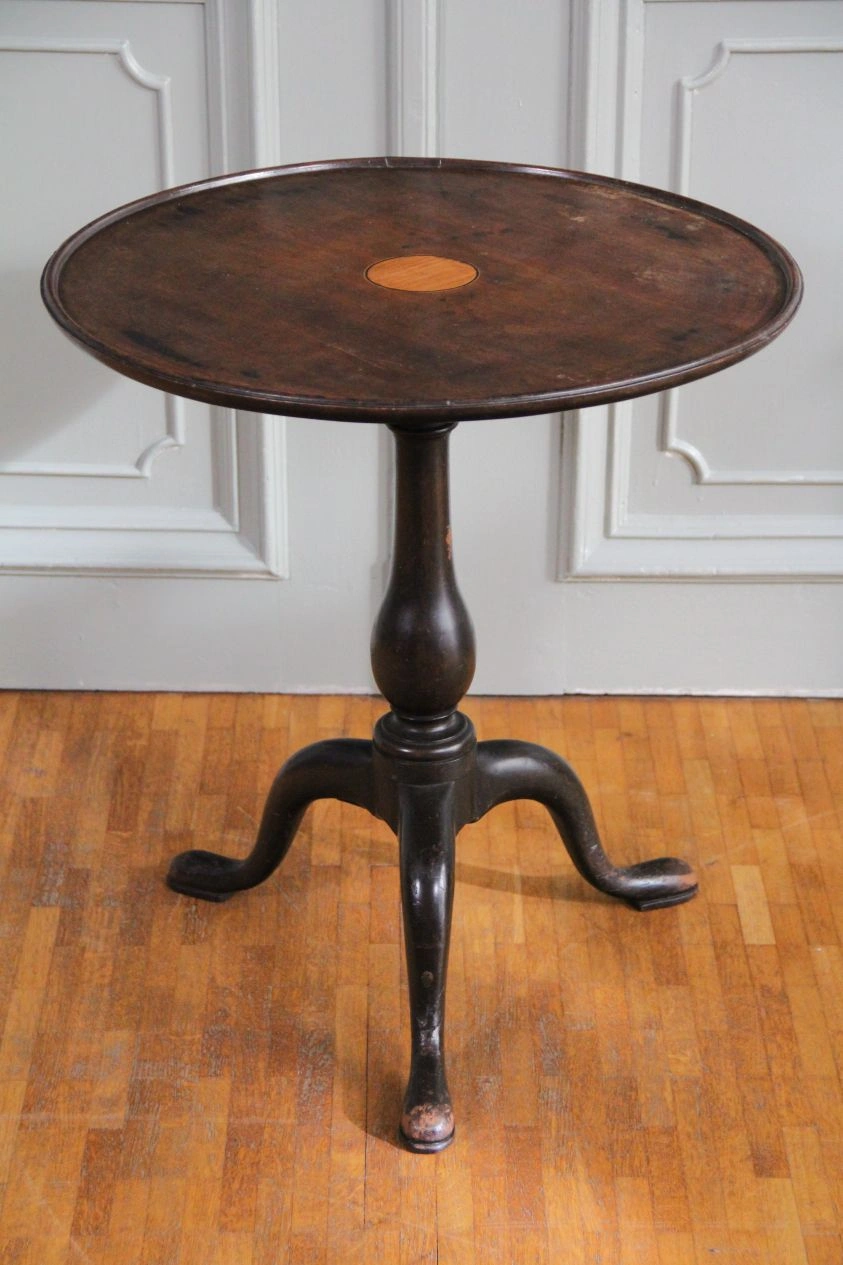 Rond bijzettafeltje in cubaans mahoniehout met centraal in inlegstukje in satijnhout.