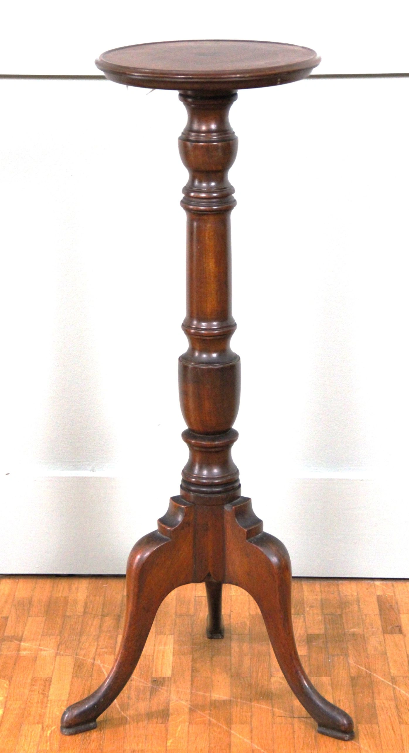 Kleine plantenstaander in mahoniehout en op driepoot.