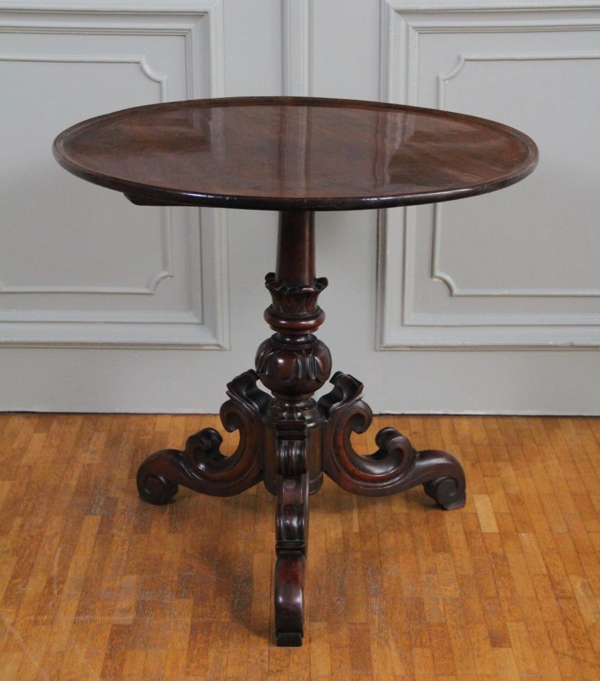 Rond bijzettafeltje in cubaans mahoniehout, op centrale poot.