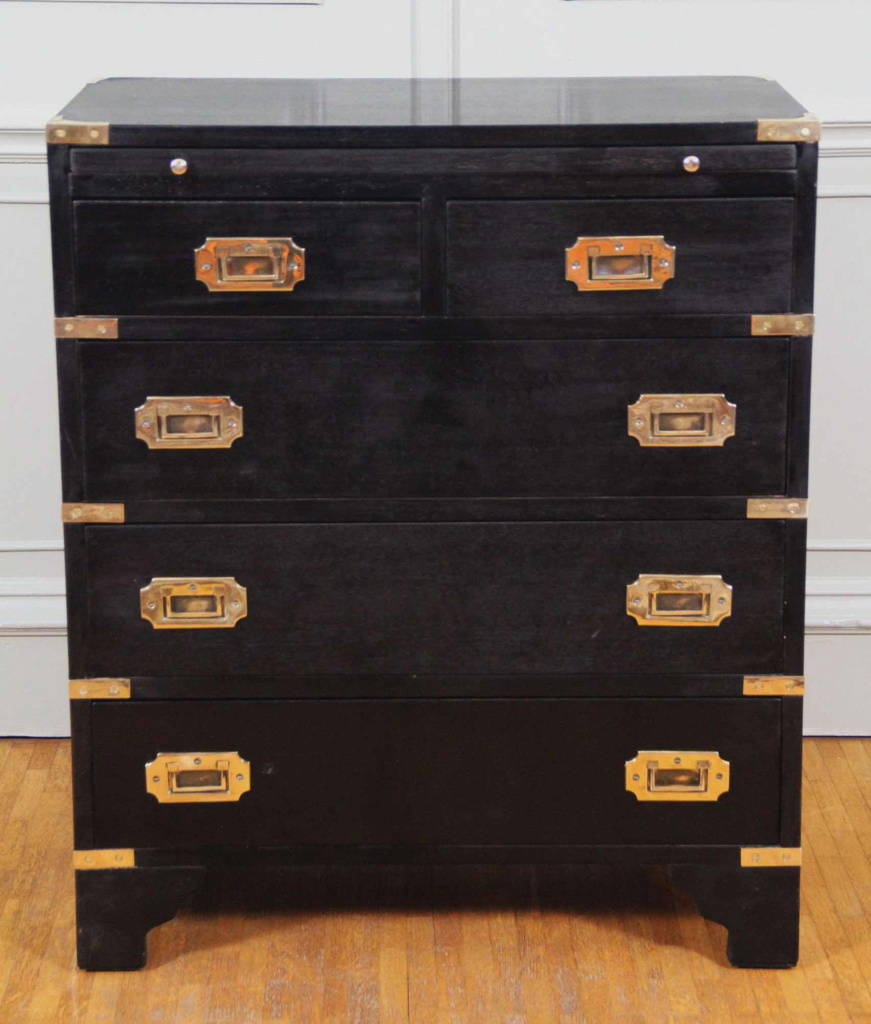 Edwardian kleine commode met uitschuifblad boven de schuiven. Georgean stijl. Drie laden en twee kleine laden, gradueel vergrotend naar onder toe.