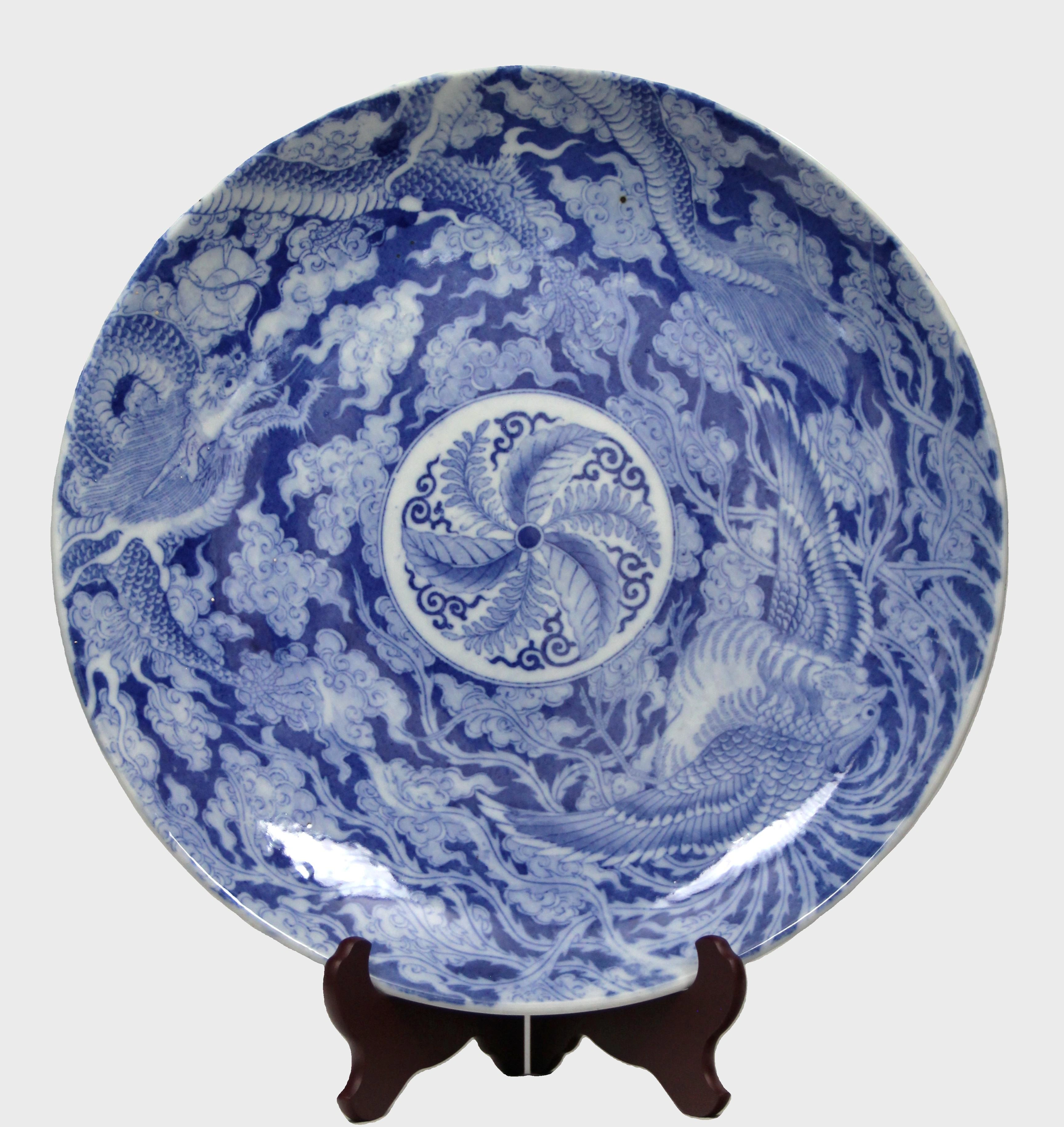 Vroeg 20e eeuwse Japanse schaal met blauw-wit decor.