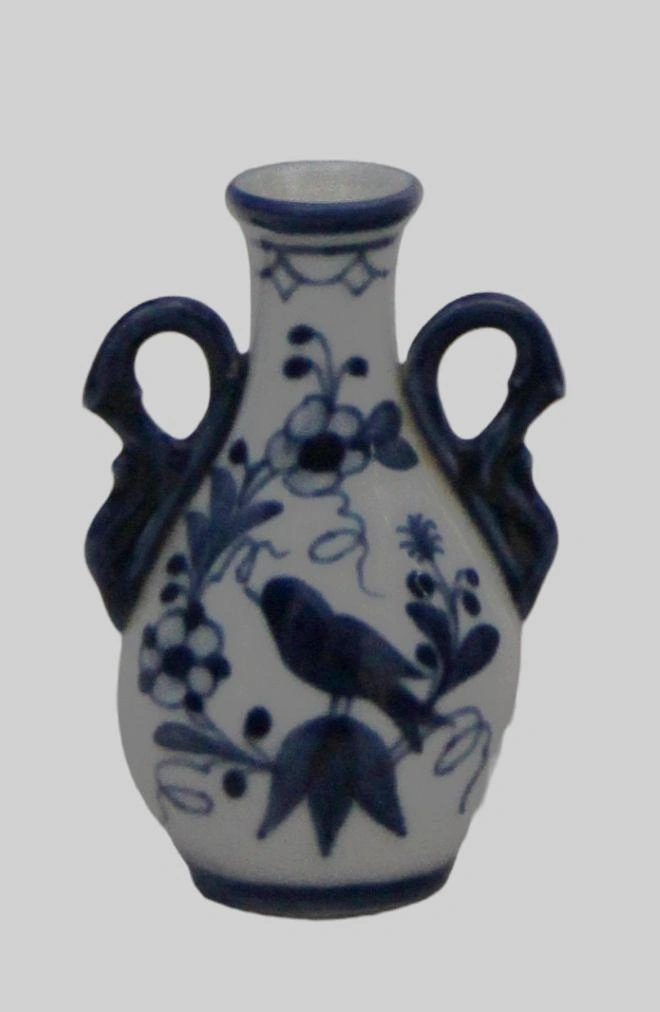 Imari miniatuurvaasje met blauw-witte decoratie.