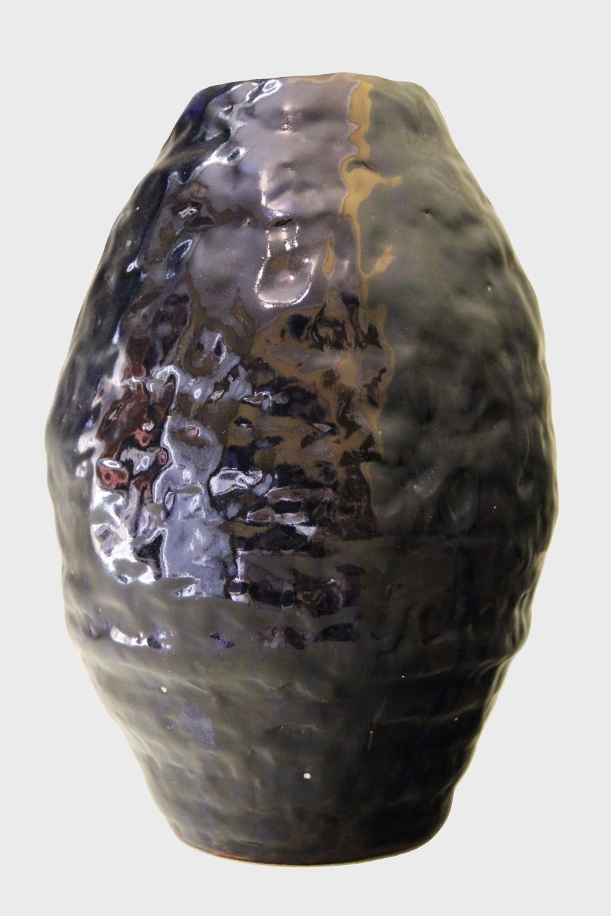 Vintage vaas in ceramiek met blauw-zwart glazuur.