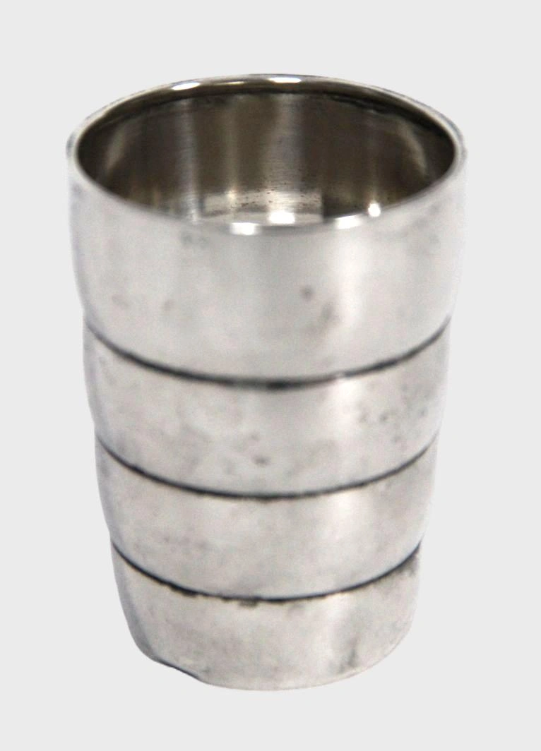 Een klein zilver drinkbekertje.