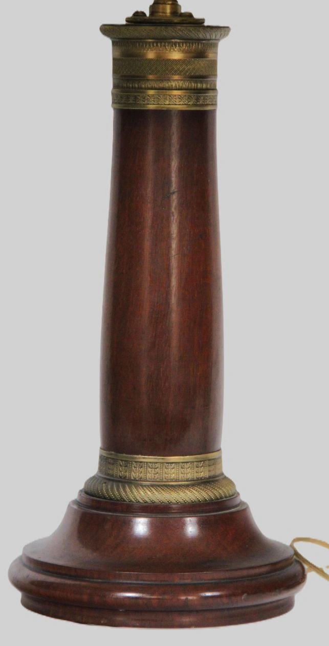 Schemerlamp met mahonie voet en verguld bronzen beslag. Empirestijl.
