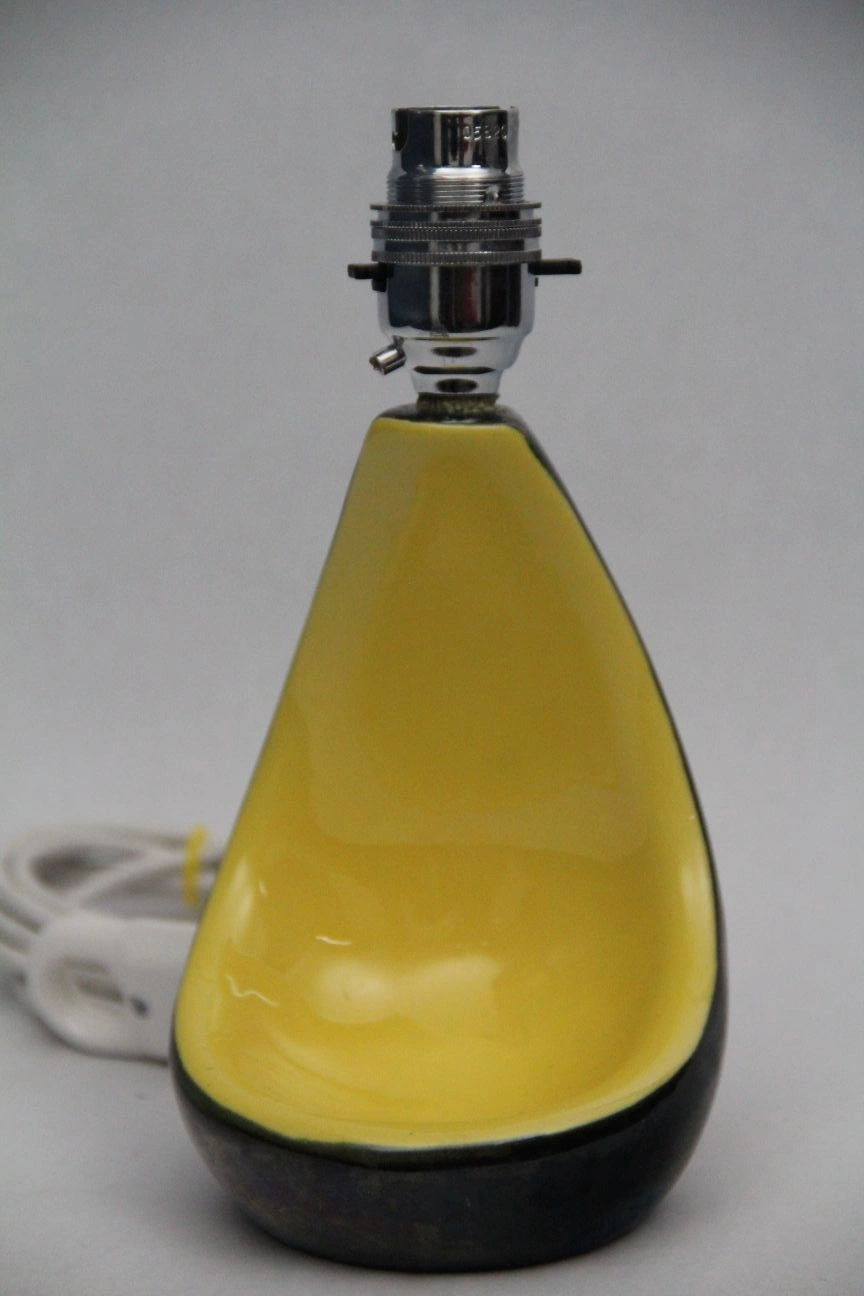 Tafellampje in ceramiek met zwart-geel contrastkleuren.