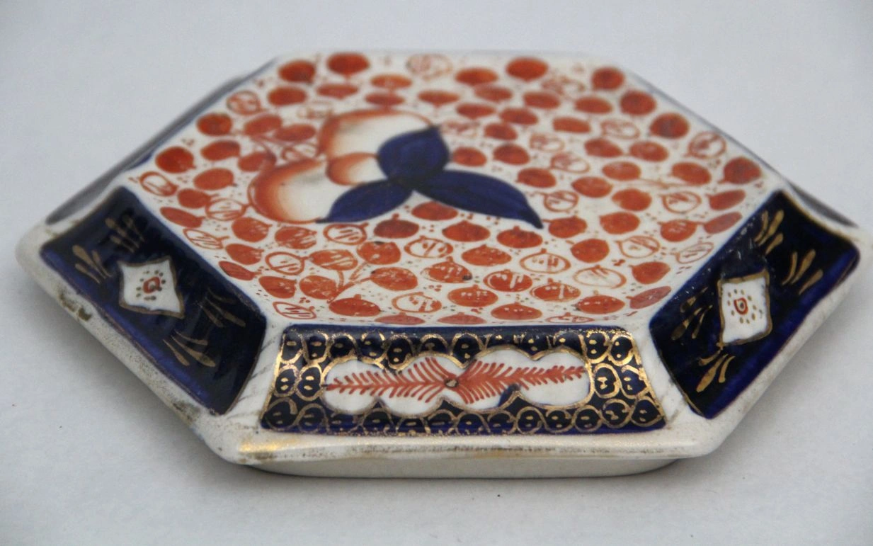 Zeshoekige onderzetter in aardewerk en in de stijl van Masons (niet gemerkt).